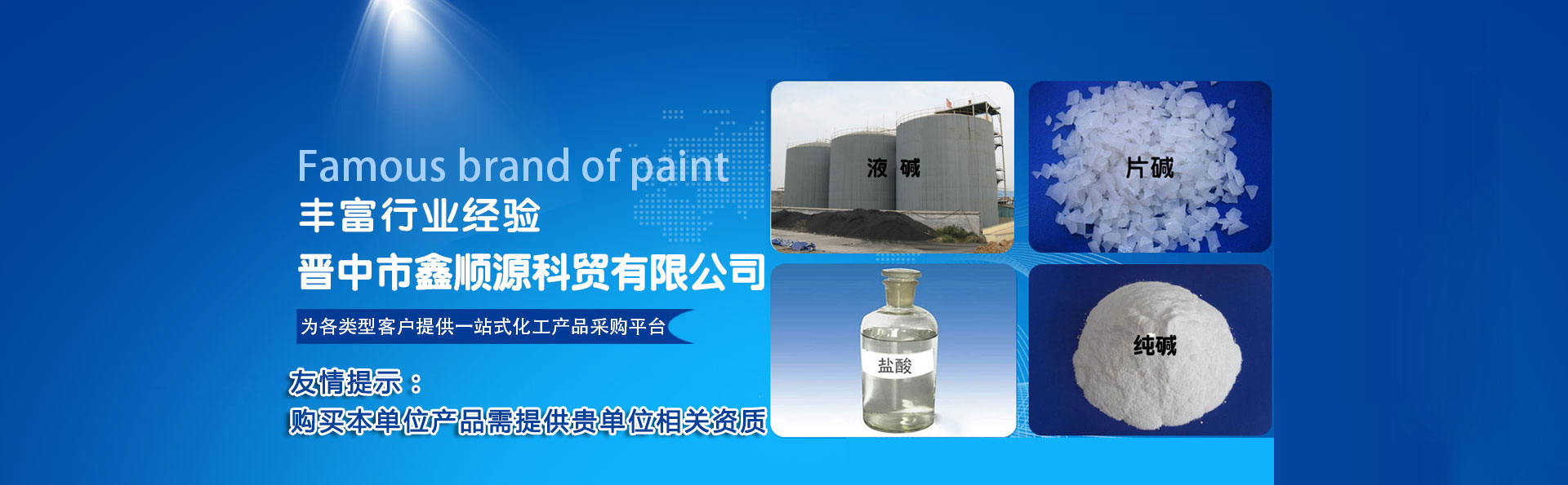 晉中市鑫順源科貿(mào)有限公司成立于2012年9月4日,位于榆社縣東大街大寺路,有安監(jiān)局頒發(fā)的中華人民共和國危險化學(xué)品經(jīng)營許可證和非藥品類易制毒化學(xué)品經(jīng)營備案證明,主要經(jīng)營鹽酸、次氯酸鈉、液堿 、 片堿  、純堿 、  硫酸 、 聚合氯化鋁、 氯化鈣、氯化鋇、氯乙酸、氨水、水處理劑等危險化學(xué)品的銷售及運輸......